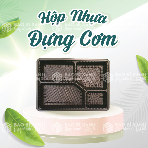 Hộp đựng 1 ngăn, 2 ngăn, 3 ngăn, 4 ngăn, 5 ngăn.... đa dạng kiểu dáng. Hộp vuông, chữ nhật, tròn oval đủ loại. Khay - hộp dày mỏng đen, đỏ nhiều màu sắc. Nắp nhựa cao, thấp phù hợp với nhiều nhu cầu.