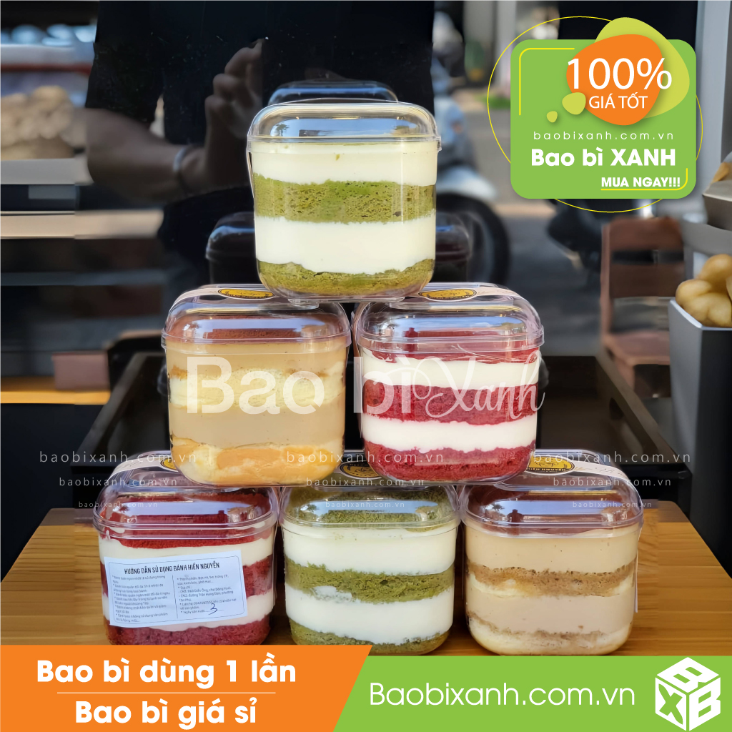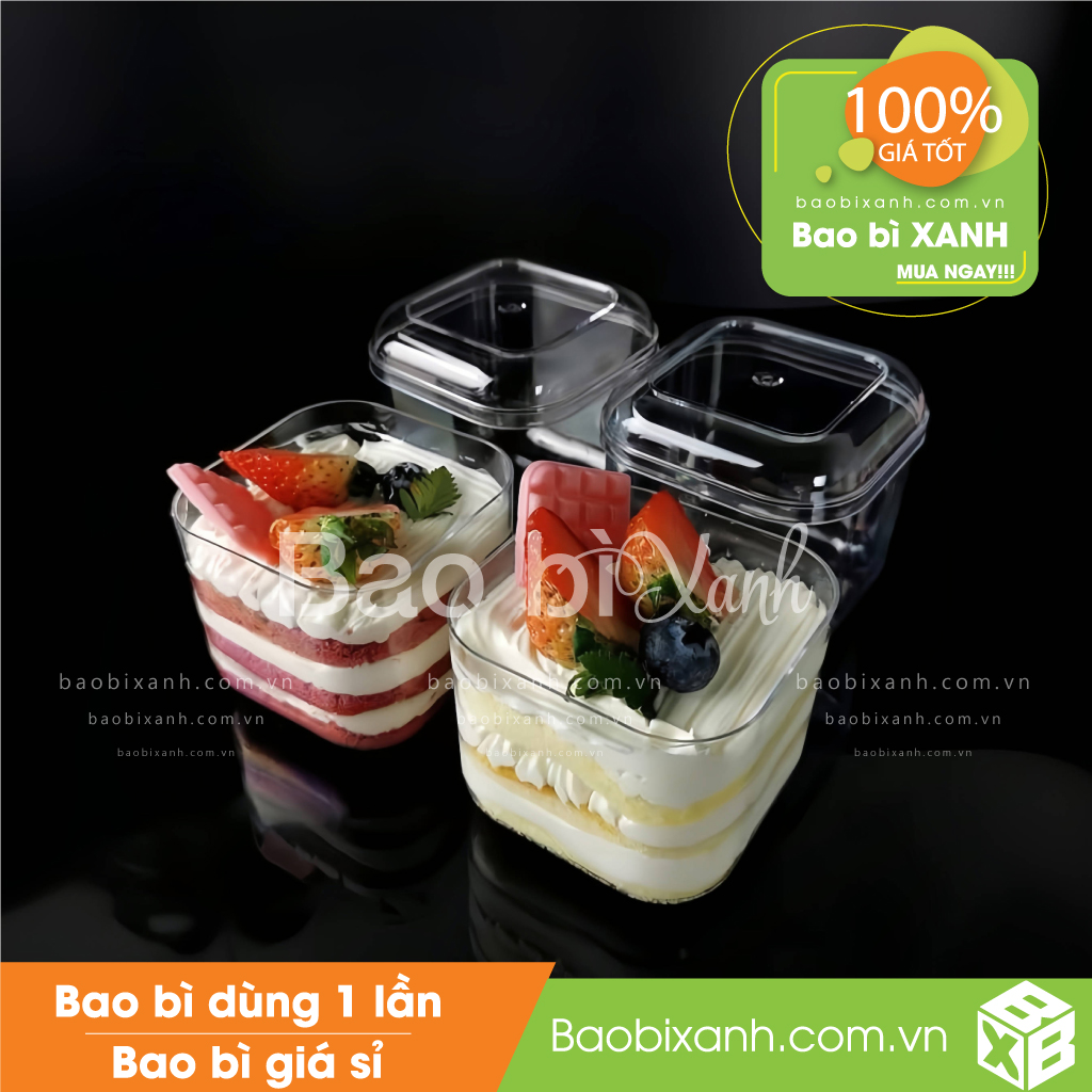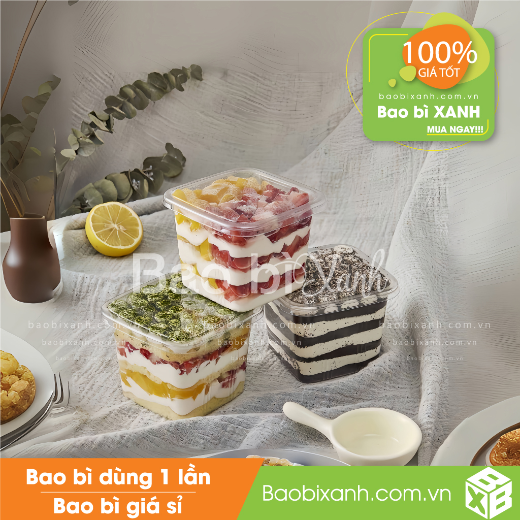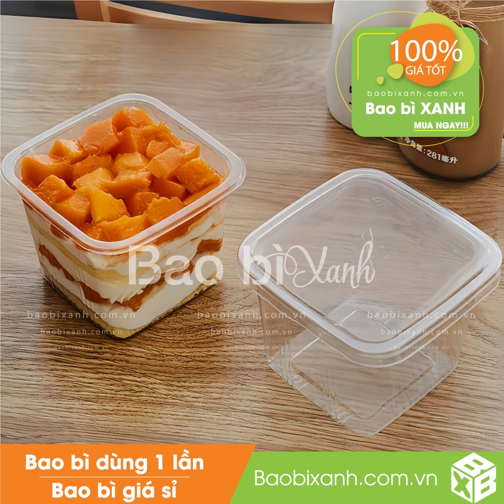 - Hộp nhựa PET hình vuông phù hợp để đựng bánh lạnh như tiramisu, mouse, bánh kem, sữa chua hoa quả...thuận tiện mang đi