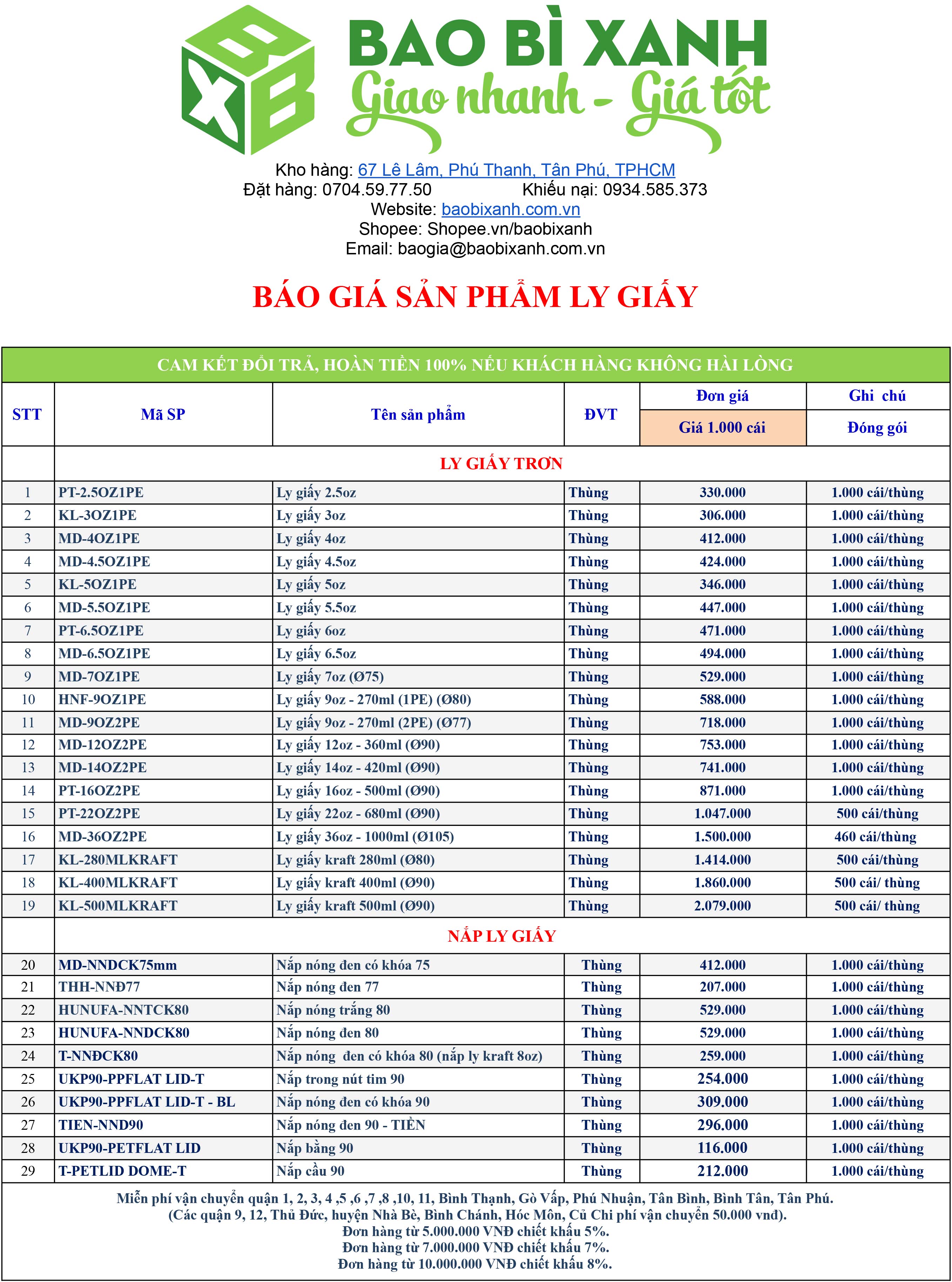 Đặt Ly Giấy tpHCM Giao nhanh 2h- Sỉ Lẻ Giá rẻ hàng đầu