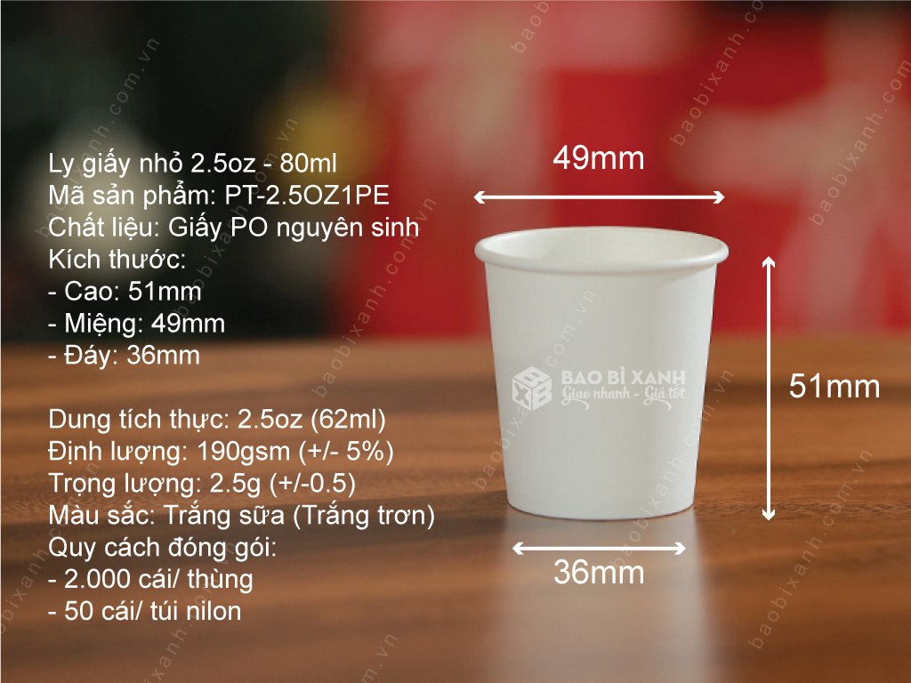 Nếu bạn đang có nhu cầu đặt mua ly giấy 2.5oz 80ml thì liên hệ ngay để được tư vấn, gửi báo giá, hình ảnh sản phẩm và các thông tin giao hàng từ đội ngũ tư vấn viên nhé.