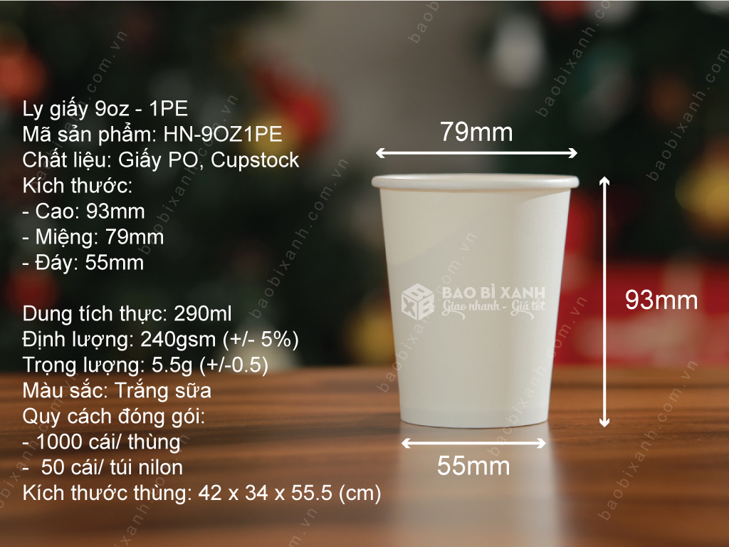 Bao bì Xanh cung cấp các loại ly giấy 9oz (270ml) với thiết kế đẹp, nhiều mẫu mã hiện đại và sáng tạo. Ly giấy trơn được bảo vệ bởi 2 lớp PE chống thấm nước, vì vậy nó thích hợp cho cả nước uống nóng và lạnh. Bao bì Xanh là địa chỉ tin cậy để mua các loại ly giấy, muỗng và tô giấy, với số lượng lớn và ít, đảm bảo giá cả phải chăng. Liên hệ ngay để được đội ngũ tư vấn viên hỗ trợ giải đáp mọi thắc mắc 24/7!
