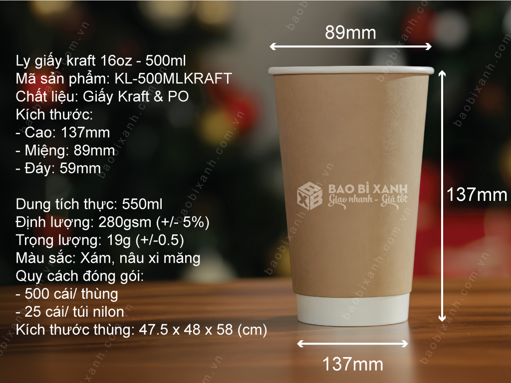 Với ly giấy kraft 16oz - 500ml, bạn sẽ không chỉ có một sản phẩm chất lượng và đẹp mắt mà còn là một công cụ để nâng cao thương hiệu của mình. Hãy liên hệ với Bao bì Xanh ngay để đặt hàng và trải nghiệm những lợi ích mà dòng sản phẩm này mang lại.
