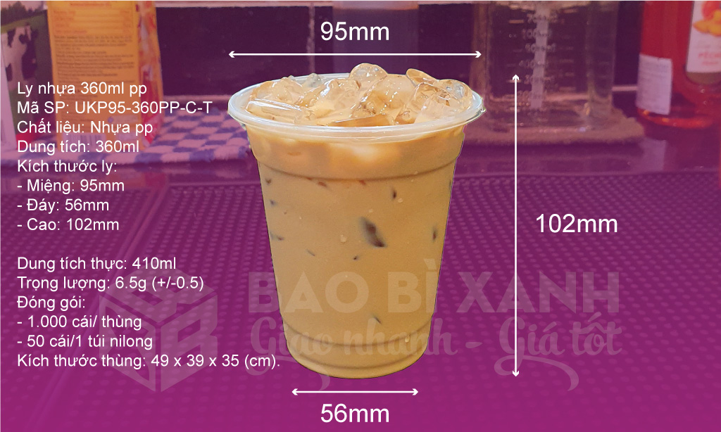 Là 1 trong 3 dung tích không thể thiếu ở các cửa hàng trà sữa, ly 360ml phù hợp với mọi loại đồ uống. Kiểu dáng ly nhỏ nhắn, đẹp mắt lại đa năng nên rất được ưa chuộng.