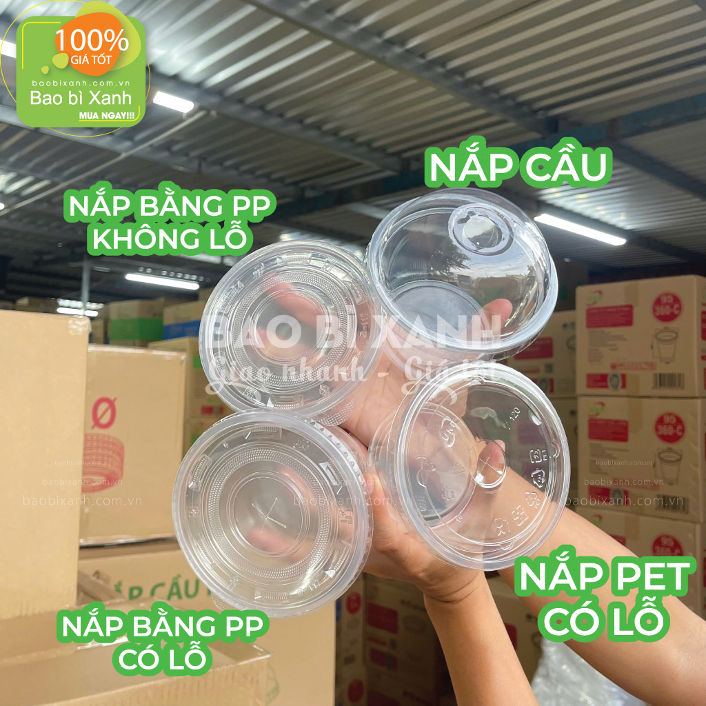 Bao bì Xanh cung cấp đầy đủ phụ kiện nắp đi kèm đến màng ép miệng ly nên quý khách hoàn toàn yên tâm lựa chọn sản phẩm phù hợp nhất với nhu cầu sử dụng.