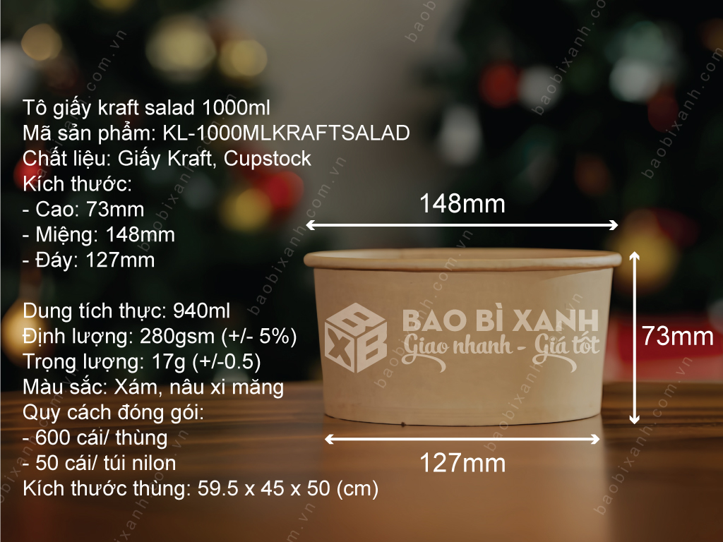 Tô kraft salad 1000ml được sử dụng nhiều nhất ở các cửa hàng thức ăn nhanh, các cửa hàng bán thức ăn qua app. Tô có nắp đậy chắc chắn giúp bạn dễ dàng trang trí, decor món ăn bắt mắt vừa dễ dàng ship đi xa mà không sợ đổ, thấm.